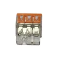 Fault-free electrical installations are guaranteed with push wire splicing connector (252). This series of PUSH WIRE connectors ensures safe and quick connections in both surface-mounted and flush-mounted junction boxes in any building, regardless of installation complexity. This splicing connector has a rated voltage of 400 V and can handle currents up to 24 A, making it ideal for high-load applications. Strip lengths must be 12 mm when connecting conductors to push wire splicing connector. This product features conductor terminals and utilizes PUSH WIRE. Our proven PUSH WIRE connection offers the fastest method for clamping conductors. It utilizes the conductor's stiffness to overcome the clamping spring's contact force.